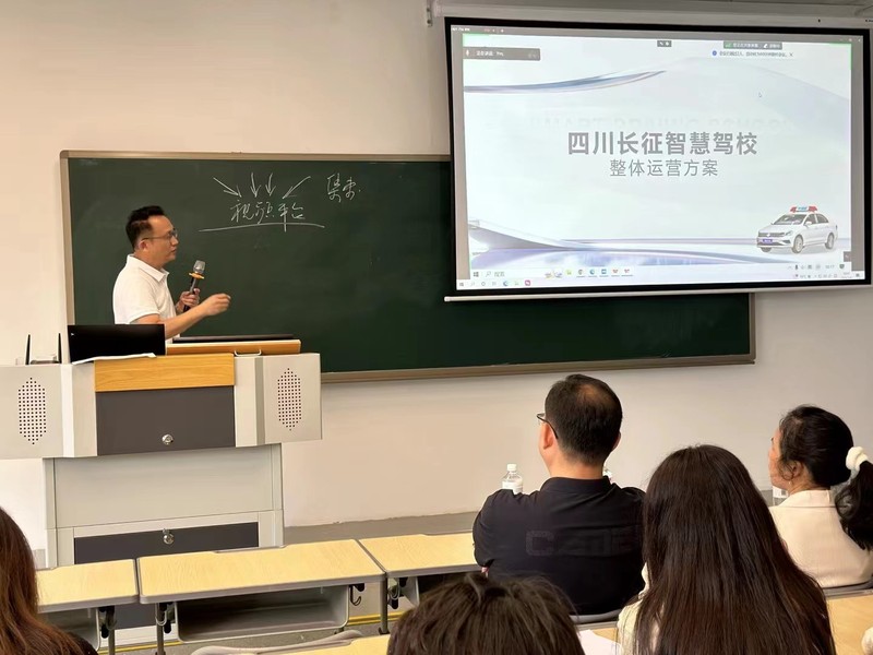 交流会上,董强主委首先开启了传统驾培行业在新质生产力时代进行升级转型之路的宣讲。董主委展示了人工智能下智慧驾校的整体布局构想,向学生们提供了新媒体运营、短视频直播的主播、视频制作剪辑等岗位需求及实习机会,并表达了与高校建立长期创新创业实践基地的合作计划。
