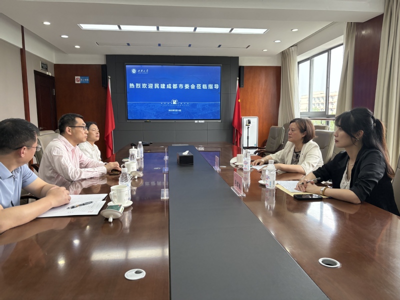 5月14日,民建成都市委会主委史红平、专职副主委王萍、组织处处长李君懿一行来校座谈交流,校党委书记靳敏出席会议,党委统战部、民建ok138cn太阳集团529支部相关负责人参会。
