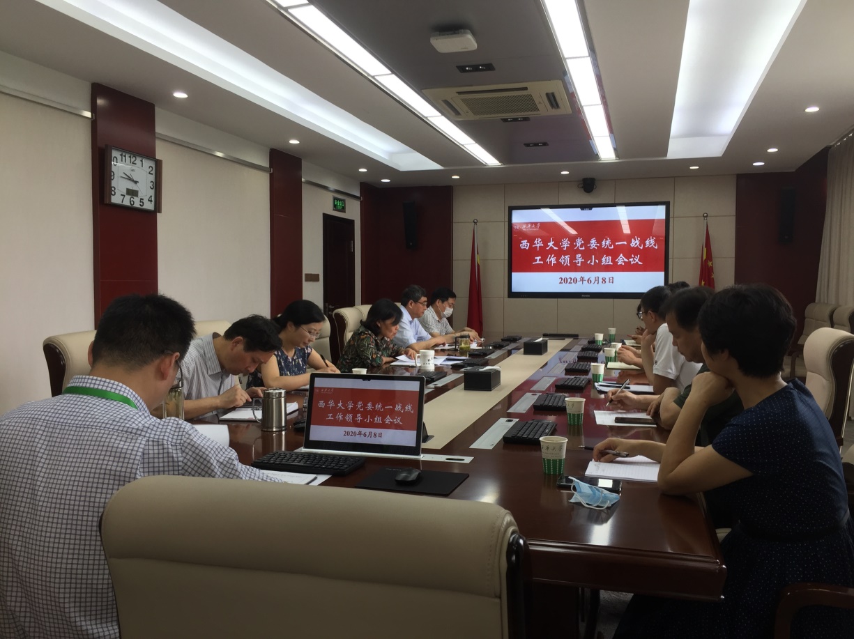 6月8日上午,学校在办公楼510会议室召开党委统一战线工作领导小组会议,传达省(市)委统一战线工作领导小组2020年第一次全体会议精神,部署相关工作。校党委书记、校党委统一战线工作领导小组组长边慧敏,校党委副书记、校党委统一战线工作领导小组副组长王小林,统战工作领导小组成员单位负责人参加会议。