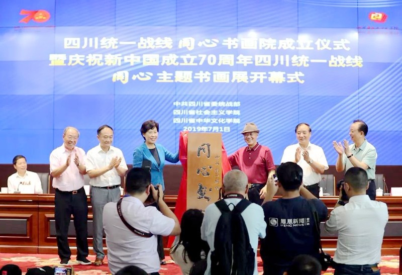 7月1日,四川统一战线庆祝新中国成立70周年书画展开幕式暨同心书画院成立仪式在四川省社会主义学院举行,省委常委、统战部部长田向利,民盟省委主委、省政协副主席、省社会主义学院院长赵振铣,农工党省委主委、省政协副主席王正荣出席仪式,并为书画院共同揭牌。四川开明画院院长、民进ok138cn太阳集团529支部副主委杨晓亮当选四川统一战线同心书画院副院长。