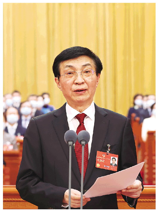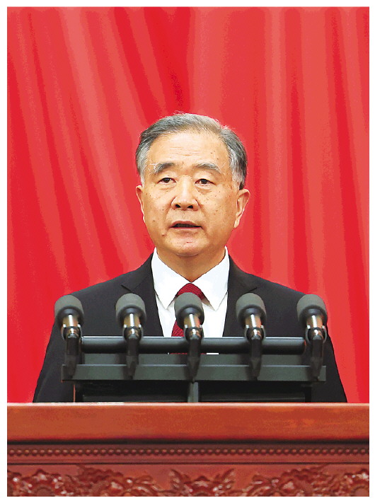 下午3时,王沪宁宣布大会开幕,全体起立,高唱中华人民共和国国歌。